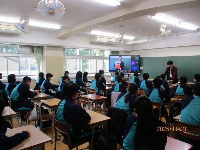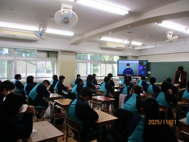 本日21日は、生徒会朝礼がオンラインで実施されました。生徒会本部の進行で、各種委員会の代表から連絡事項が伝達されました。それぞれ大事な内容で、教室の生徒も真剣に聞いていました。そして、代表からの話が終わると、体育館での朝礼と同じように、大きな拍手が各教室から起こっていました。最後に、先日チラシを配布した、明日22日に加賀中学校のパソコンルームで開催される「合唱演奏会」について、事務局の方からご案内がありました。プロの声楽家で武蔵野音楽大学の講師でいらっしゃる先生をお迎えして開催される音楽会です。地域の小・中学生や保護者などどなたでも参加でき、白梅祭で素晴らしい合唱を披露した加賀中学校の生徒にもぜひ参加してほしいとのお願いでした。チラシによりますと、部活動の地域移行の一環として、今後は加賀中学校を中心とした「合唱クラブ」の活動につなげていくことを予定しているとのことです。