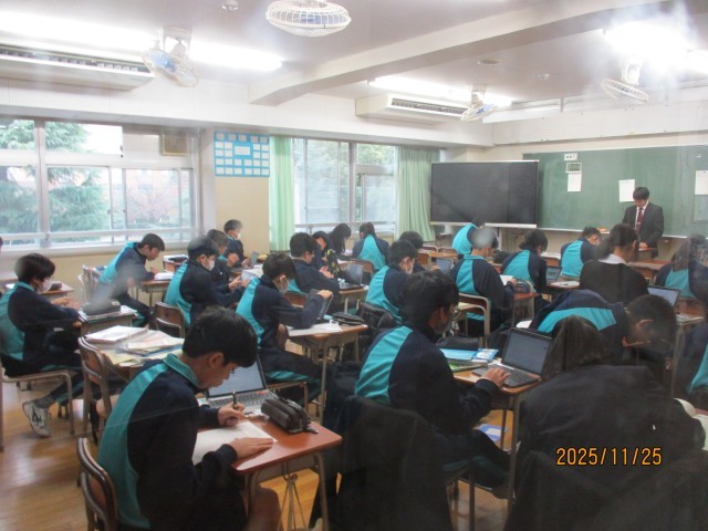 本日25日から28日までは、8年生の職場体験の本番になります。いよいよ生徒は受け入れてくださった各職場で実際の仕事の体験をすることになります。職場体験は3日間で、それぞれの職場に直行し終了後は直接帰宅しますが、3日目のみ学校に戻り「体験終了」の報告をします。残りの1日は学校で作業をする日として登校し、事後学習の新聞作りやお礼状の下書きに取り組みます。本日も職場体験のない生徒が、一生懸命教室で作業をしていました。本番に向けて、8年生は先週21日の金曜日の5校時に体育館で最後の事前指導を受けました。意義のある職場体験にするため、何よりも受け入れてくださった各職場の皆さんにご迷惑をおかけしないようにするためにはどうするべきか、生徒は真剣に話を聞いていました。社会で働く初めての経験ですので緊張の連続だったと思いますが、事前指導に従い、前日までの準備も怠らず、加賀中学校の生徒らしく明るく礼儀正しい姿勢で、良いスタートを切ることができたことと思います。