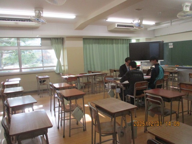 早いもので今年も12月となりました。本日は、朝方の雲が午前中にすっかりなくなって快晴となり、気温も20度まで上がり、風もほとんどない、暖かく穏やかな「小春日和」となりました。校庭の日向では、鳩たちが一心に砂をついばんでいて、その姿に癒されるような気持になりました。生徒にとっては、12月は2学期の締めくくりの月で、何かと慌ただしくなります。特に9年生は、高校入試を間近に控え、落ち着かない日々を過ごしていることと思います。もちろん、7年生と8年生も「毎日一歩前進」で頑張っていることと思います。本日から8日の月曜日までは全学年で三者面談が実施されます。生徒、保護者、担任による大事な面談です。2学期の振り返りとともに、中心となる生徒の思いを受け止め、保護者と担任も一緒になって生徒にとってより良い方向を目指して、話し合っていきます。暖かさも明日までで、いよいよ冬の気候となり、気温も上がらなくなっていくということです。インフルエンザが大変流行っていますので、うがい、手洗い、マスクなど感染予防を徹底して、1年納めの月を無事に過ごしてもらいたいと思います。