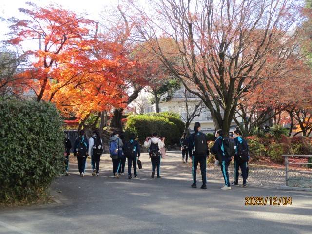 11月27日から12月9日までは、三者面談等があるため、午前中授業で給食、学活、清掃の終了後13時30分に下校となり、下校後は15時までを家庭学習時間としています。教科によっては課題が出される場合もありますが、生徒は各自で学習内容を決めて学習に取り組むことになりますので、生徒の自律性を高める機会にもなっています。生徒は、自分やるべきことを理解し、「毎日一歩前進」に向け家庭でも頑張っています。なお、この期間中の部活動等については、原則、14時から16時までの活動とし、部活動等のある生徒は、14時までは校内で待機となります。本日も、バスケットボール部、茶道部、英語部の生徒が楽しそうに部活動に励んでいました。9年生の校長面接練習も続いています。廊下で自分の順番が来るまで待機している姿からは緊張感が伝わってきますが、終了して退出してきた時には何とも言えない開放感を感じます。あと20日ほどで終業式という2学期末ですが、加賀中学校の生徒は毎日頑張っています