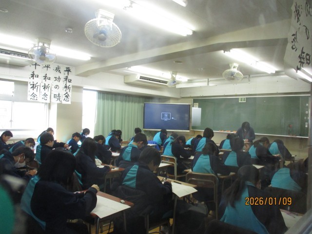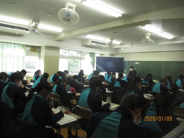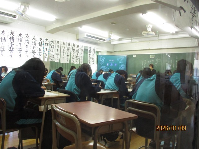 本日9日は、3学期の2日目です。本日から通常授業がスタートしました。子供たちは、お正月気分から気持ちを切り替えて、授業に打ち込んでいます。写真は、9年生、8年生、7年生の教室の様子ですが、各教室とも全ての子供たちが一生懸命に授業に集中している様子が伝わってくることと思います。また、校庭や体育館でも元気に体育の授業に取り組んでいます。特に、9年生の教室では、高校受験を間近に控え、少しの時間も無駄にできないという一層の緊張感にあふれていました。高校受験は、都内の私立高校の推薦入試が1月22日以降に、都立高校の推薦選抜が1月26・27日に実施されます。一般入試も、私立高校は2月10日以降に、都立高校は2月21日に実施されます。近隣県の一般入試も、千葉県の私立高校が1月17日以降に、埼玉県と神奈川県の私立高校が1月22日以降に実施されます。本当にもう目の前です。9年生は、志望校を目指し、悔いのないよう最後の追い込みに入っています。明日から3連休ですが、この冬一番の寒波に日本列島はおおわれると予想されています。何事も「健康第一」です。9年はもちろんですが、7年生も8年生も、体調管理に十分気を付けて、「毎日必ず一歩前進」で頑張ってもらいたいと思います。