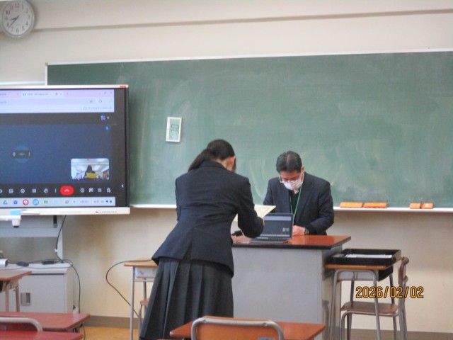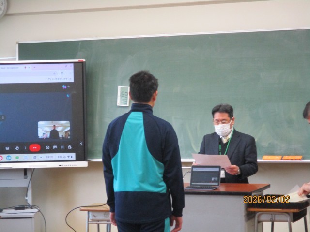 本日2日は、2月の授業のスタートです。本日は、オンラインによる朝礼を実施しました。最初に校長から3点の話がありました。1点目は、6日の金曜日から始まる冬季オリンピックに触れつつ、9年生に向け、『学校だより』に掲載した「信は力なり」の大切さを改めて強調し、ぜひ「合格」という金メダルを勝ち取ってほしいとエールが送られました。2点目は、先日、子供たちや家庭にも連絡した生成AⅠに関する利用上の注意点を徹底する重要性についてでした。3点目は、引き続きインフルエンザが流行していることを受けて、うがい、手洗い、食事等による予防・体調管理について注意が呼びかけられました。オンラインの朝礼でしたが、各教室では子供たちが真剣に話を聞いていました。続いて生徒表彰が行われました。今回は、バレーボール部、吹奏楽部、個人の柔道の活躍に対する表彰が順番に行われ、賞状を受け取るたびに、各教室から大きな拍手が送られました。また、「社会を明るくする運動 作文コンテスト」において加賀中学校が学校表彰されたため、代表生徒として生徒会会長が賞状を受け取りました。3学期もあと2か月弱となり、9年生の高校受験がピークを迎え、3週間後には学年末考査も控えています。朝礼でも話がありましたが、空気が大変乾燥していますので、子供たちには健康に十分留意して、元気に有意義な毎日を過ごしてほしいと思います。