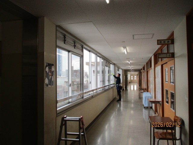 本日12日は、昨日の雨は上がりましたが、朝方は、雲が多い天気となり、日差しがなかったため少し寒く感じました。昼頃からは、雲の切れ間から太陽が顔を出し、暖かくなりました。昨日の雨は久しぶりということで、東京もそうですが、ずっと雨が降らず水不足となっている地域では、わずかながらでも「恵みの雨」となったようです。また、空気が大変乾燥していますので、インフルエンザなどの落ち着きにつながってくれればと願うところです。加賀中学校では、本日から窓ガラスの清掃が始まりました。専門の業者の方が朝からおいでになり、夕方まで清掃が続きます。授業に支障のないように作業しますので、下校後に普通教室の窓ガラスの清掃をするなど1日では終わりません。窓の外側のガラスも清掃することになるので、やはり専門の業者の方でなければ危険な作業です。清掃前にはあまり汚れに気が付かなかったのですが、清掃後の窓ガラスを見るときれいにピカピカになっていることに驚きます。明後日の14日には土曜授業プランや新入生保護者説明会がありますので、ご来校いただいた皆さんにきれいな加賀中学校をご覧いただけると思います。約1か月後には卒業式が控えています。きれいな気持ちの良い校舎で、卒業生を送ることができます。