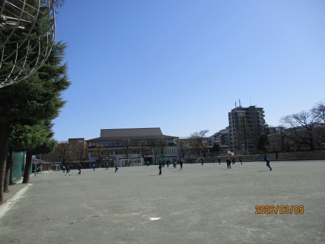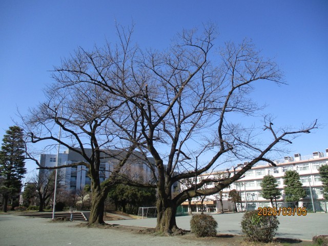 本日5日は、朝から雲一つない快晴となりました。この時期の日差しは日増しに強く、暖かくなっているのを感じます。午前中は北風が強かったため寒い朝となりましたが、昼ぐらいには風も弱まり、春らしい暖かさになりました。子供たちも、昼休みには元気に校庭で出て、運動などを楽しんでいました。昨日のニュースで今年の桜の開花予想がありましたが、全国で一番早いのは東京で、2週間後の3月18日ということでした。予想が当たりますと、19日の卒業式には加賀中学校でも桜が開花してくれているのではないかと大いに期待したいところです。東京の桜の標本木は靖国神社にあります。なぜ靖国神社の桜なのかというと、有名なお天気キャスターの著書の中で、昭和20年代後半に調査した時に、各公園や各所の桜の開花日を平均したら、靖国神社の桜が平均日に一番近かったからと紹介されています。加賀中学校の桜も、つぼみがだいぶ大きくなってきました。靖国神社の桜を待つことなく、卒業式には花を咲かせて、卒業生の晴れの門出を祝ってもらえれば、子供たちも嬉しさが増すことと思います。