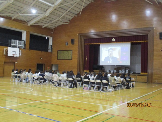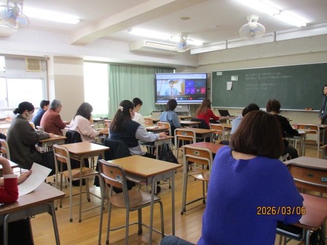 本日6日の15時から、本年度最後の保護者会を実施しました。7年生と8年生の保護者の皆様には各教室に、9年生の保護者の皆様には体育館にお集まりいただきました。最初の15分間はオンラインの全体会とし、校長のあいさつに続いて、進路情報と報告、来年度の年間行事・4月行事予定についてお伝えしました。続いて学級懇談会として、今年度の振り返りのほか7・8年生は来年度について、9年生は卒業式についてなど学校からお伝えするとともに皆様にも話し合っていただきました。保護者の皆様におかれましては、この1年間を振り返っていただく機会になったことと思いますが、改めて子供たちの成長を実感され、喜びもひとしおというところではないでしょうか。保護者の皆様、本日はお忙しい中をご参加いただき誠にありがとうございました。