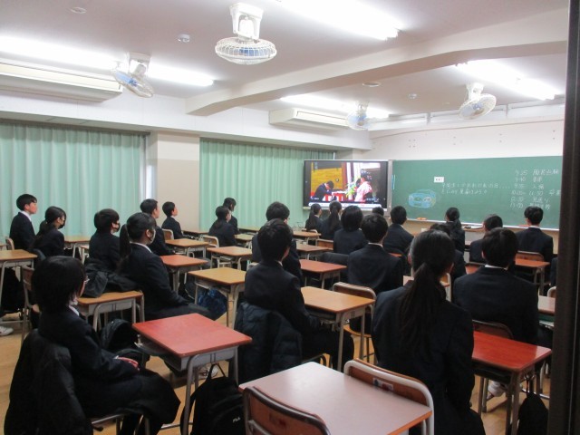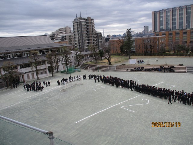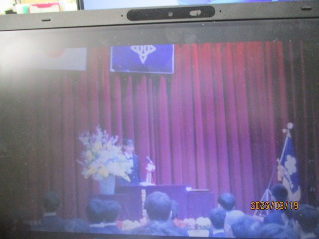 本日19日は、加賀中学校の卒業式でした。お天気が心配されましたが、雨が降ることなく、卒業式を迎えることができました。登校の時間になると、保護者と一緒に登校してくる卒業生の姿が喜びにあふれている様子でした。保護者の皆様も、3年前の入学式からの3年間を振り返っているようで感慨深い様子が印象的でした。来賓の皆様、保護者の皆様、そして在校生代表の8年生が待っている会場に、緊張した面持ちの卒業生が、1組から順番に担任を先頭に入場してくると、お祝いの大きな拍手で迎えられました。7年生は、各教室でのオンラインの参加となりましたが、お世話になった9年生への感謝の思いを胸に、モニターを注視していました。国歌、校歌の斉唱に続いて、卒業証書が授与されました。厳粛な雰囲気の中一人ひとり壇上に上がり、名前を呼びあげられるとしっかりと返事をして卒業証書を受け取りました。校長の式辞、来賓の皆様からの祝辞、在校生代表の8年生からの心のこもった送辞と続き、卒業生代表による答辞になりましたが、4人が交代で感謝の言葉やこれからの決意などを立派に伝えてくれました。最後に、卒業生が一生懸命に練習してきた合唱を披露して閉式となりました。子供たちにとっても、保護者の皆様にとっても、そして我々教職員にとっても大変感慨深い卒業式でした。卒業式の後、在校生と保護者とで校庭に2列の花道をつくり、卒業生を送り出しました。お祝いの大きな拍手で送られる中、担任を先頭に卒業生がその間を嬉しそうに通り抜けて加賀中学校に別れを告げました。とはいえ、やはり去りがたく、保護者の皆様も一緒になってスタンド上に集まって、PTAが用意してくれたフォトスポットで記念撮影をするなど、名残を惜しんでいました。卒業生が花道を通る時には日が差してきて、太陽も門出を祝っているようでした。