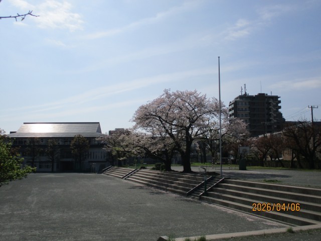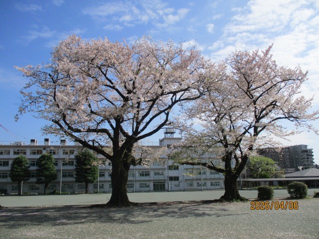 本日6日は、雲が多いものの気温が上がり、東京でも夏日に近い24度になると予想され、温かいというよりも暑さを感じるほどでした。今週は春休みも終わり、いよいよ子供たちの新年度のスタートとなる始業式が8日に、入学式が9日に実施されます。加賀中学校では、本日も教職員が出勤し、新年度の準備に余念がありません。本日のスタンド上の桜の様子は写真のとおりですが、頑張って咲いてくれています。ニュースによりますと、東京の桜はもう少し楽しめそうということですので、始業式と入学式には、気持ちも新たに進級した新8年生、新9年生と希望にあふれて入学してくる新7年生を桜の花が迎えてくれそうです。子供たちや保護者の皆様にとって、加賀中学校の桜が記念すべき思い出を飾ることになってくれれば大変嬉しく思います。