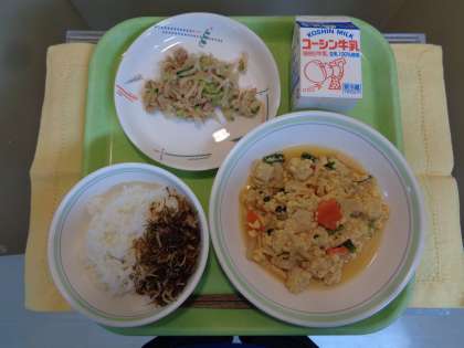 ご飯 骨太ふりかけ 牛乳 高野豆腐の卵とじ ツナ大根
