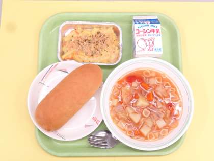 コッペパン マカロニグラタン ミネストローネ 牛乳