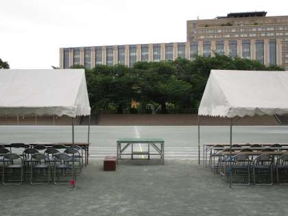 今日の5時間目は全体学活、6時間目は会場準備を行いました。準備が終わったグラウンドの静けさは、明日に備えているように感じます。明日の天気予報は晴れ。風は1〜3m。運動会日和になりそうです。