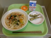 ・十和田のバラ焼き風豚丼 ・せんべい汁 ・くだもの(りんご) ・牛乳