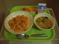 【献立】四川豆腐丼 もやしとわかめのナムル じゃが芋のチーズ入りおやき 牛乳