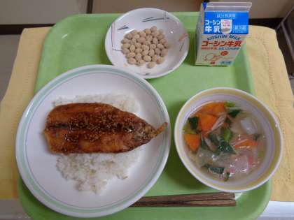 【献立】いわしの蒲焼き丼 みぞれ汁 節分きなこ豆 牛乳