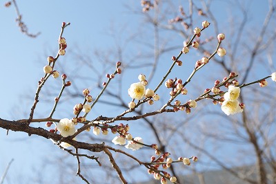 一足早く咲いた紅梅とともに、紅白の梅の花が春の訪れを知らせてくれるようです。