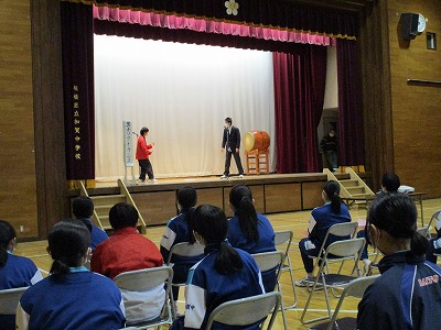 1・2年生が部活動毎に先輩たちへの感謝のメッセージを送りました。中には、コントあり、一人芝居あり、真面目コメントあり、楽しい時間になりました。