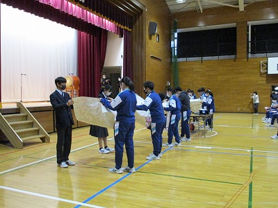最後には、1・2年生一人一人が書いたメッセージの模造紙が、3年生に手渡されました。