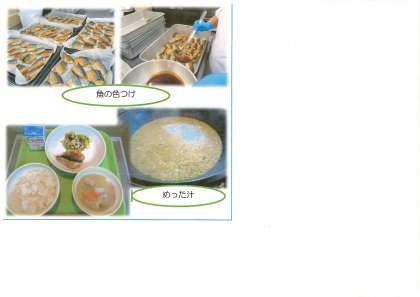 ・ごはん ・魚の色付け ・ひじきのサラダ ・めった汁 ・牛乳