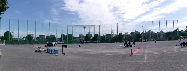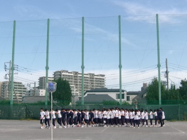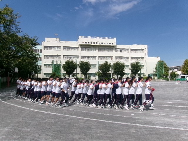 日本手ぬぐいを足に結びつけ、リズムを整え、歩幅を合わせる。かけ声も工夫して勇気を持って一歩を踏み出しました。本校にとっては、最上級生の代表的な種目となっていて、ようやく自分たちの番が来た!というような情熱か伝わってくる学年練習でした。