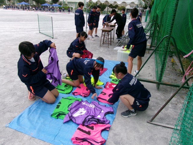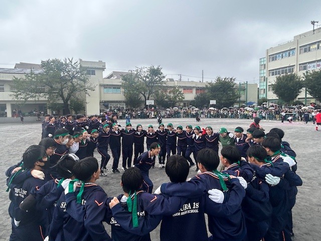 開会式は実行委員5人による華麗な選手宣誓から始まり、練習の成果を生かしたラジオ体操、競技に加えてテキパキとした係活動、多くのPTAサポートチームによる会場準備・広報活動、そして保護者・地域・板橋区教育委員等、多数の方々による声援を受けて、生徒たちの歓声が響いた運動会となりました。天気予報に基づき延期・中断のタイミングを見計らいながらの実施となりましたが、閉会式までご声援をいただき、ありがとうございました。