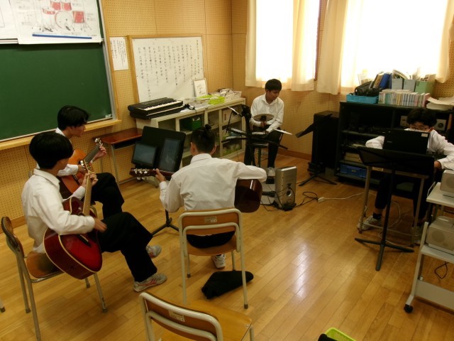 グループで演奏曲を決め、楽器を分担し、個人練習とグループ練習を繰り返します。スピードや音感といった外的な要素を補い合うことに加えて、どのようなメッセージ性を保たせるかについても話題に上がっていました。さすが最上級生、という取り組み方でした。