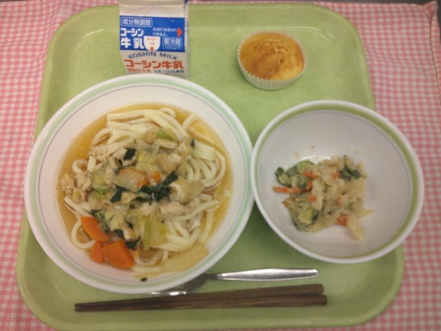 LUNCH TIME通信No.94 公開日 2025/10/17 更新日 2025/10/17 LUNCH TIME 通信 【ちゃんこうどん、ごま和え、カステラ、牛乳 】 「カステラ」の材料は、卵や砂糖、バター、小麦粉などです。よく混ぜ合わせて、ふんわりと焼きあげました。
