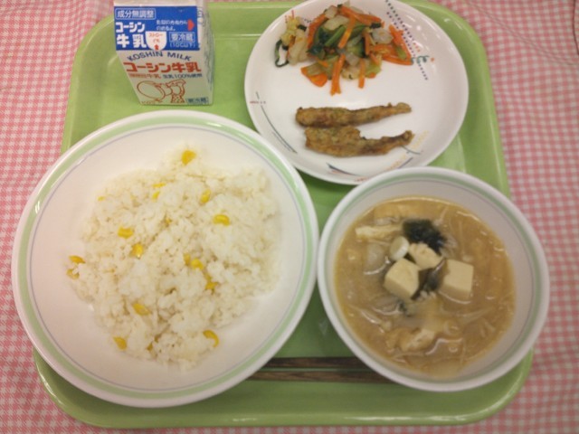 LUNCH TIME通信No.96 公開日 2025/10/21 更新日 2025/10/21 LUNCH TIME 通信 【とうもろこしご飯、小魚(にぎす)の磯辺揚げ、おひたし、みそ汁、牛乳】 今日の小魚は「にぎす」です。「きす」という魚に似ていることから、「にぎす」と呼ばれているそうです。さっぱりとした味で揚げ物によく合います。
