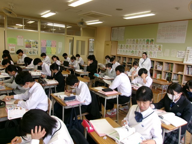 俳句10句の中から、自分が印象に残った1句を選びます。その後、17文字が表現する技法や作者の意図、基本的な構成(季語、言葉の意味など)をつかみながら、自身の感情を文章化していきます。鑑賞にかかる感想を250文字程度でまとめるため、いくつかのプロセスを経て、今日のゴールを目指していました。単に暗記にたよる勉強とは違い、着実な学習方法が身につく展開でした。