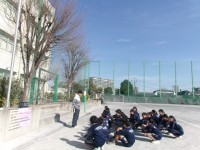 日射しを受けながら、校庭では8年生保健体育が授業を行っていました。