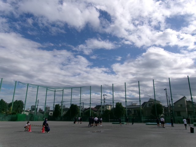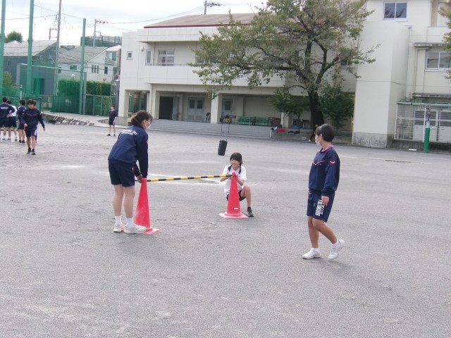 日射しを受けながら、校庭では8年生保健体育が授業を行っていました。
