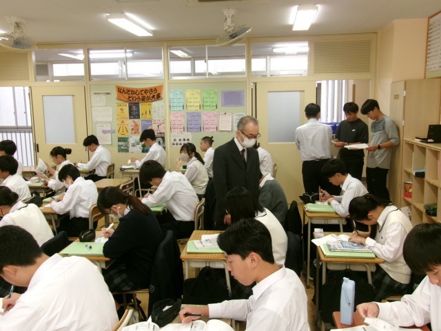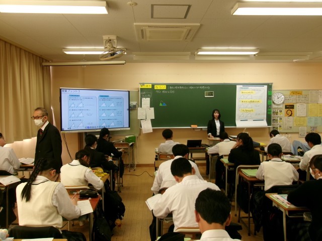 先週に続き、本日、9年生数学で授業研究を行いました。数学科における探究型の授業の視点が研究対象でした。