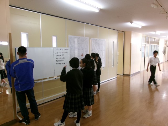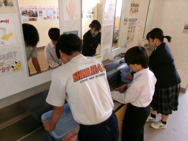 急いで校庭に出てボール遊びをする生徒、給食当番として後片付けを責任もって行う生徒、室内で級友や先生と語らったり、次の授業の教室に早めに移動してリラックスするなど、思い思いの時間を過ごしています。