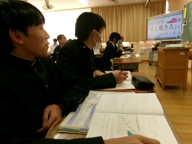 身近な観察や実験を通して、気温、湿度、気圧、風向などの理解につなげていきます。今日は湿度の概念について、大気中に含まれる水分量をもとに計算式を学習しました。