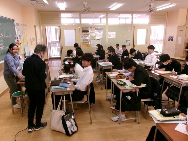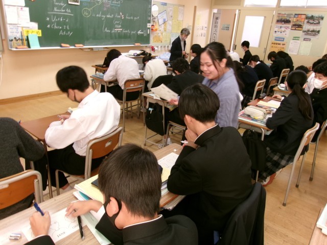 今日は比較級について、ALTの先生やデジタルガイドの音声を根拠としてイラストを作成する、という面白い学習でした。聞き違いがあると、級友のイラストとどこかしらが異なるため、確認しながら進めていました。