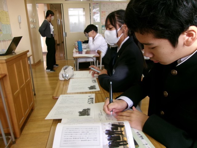 あるクラスでの話題は「標準服」。いわゆる、制服の扱いについて、考えていました。是か非かではなく、どの価値観を重視するかによって、考え方も多様でした。合理的な衣類、集団としての秩序、個性の重視、経済的負担、などなど、様々な要素を検討しながら、最適解を模索する様子が見られました。
