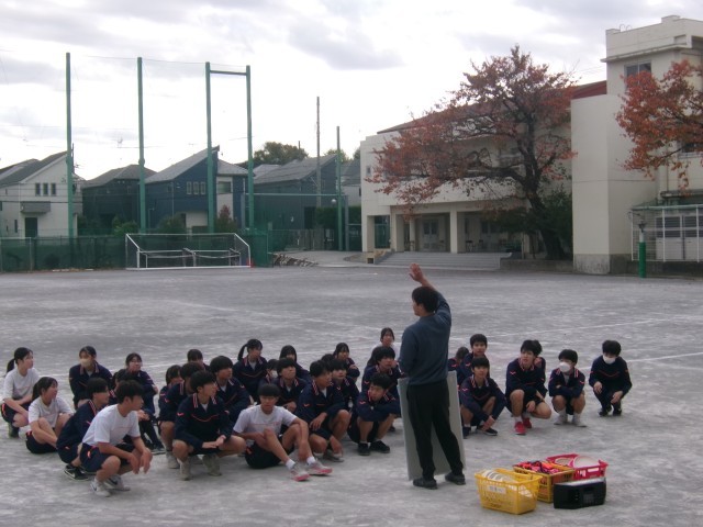 これは、フライングディスク(フリスビー)を使ったチームスポーツで、エンドゾーンでキャッチすると得点が与えられる競技です。最大の特徴は審判がいない、という点だそうです。そのため、選手自身がルールに従ってフェアプレーの精神で競技を行うことができます。グラウンドには、他者を重んじる声かけが多く響き、9年生にぴったりな種目に感じました。
