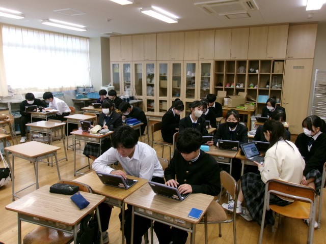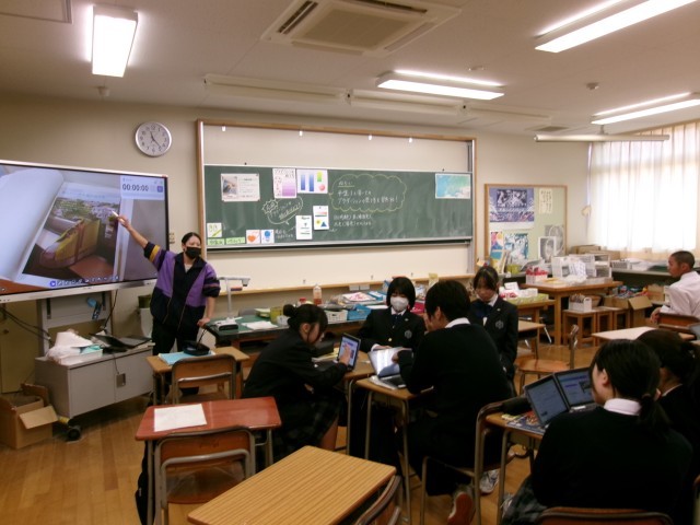 今日は、タブレットを使って、作品づくりへの思いをスライド1枚にまとめ表現する授業でした。タイトルや作品そのものの解説を読んでみると、作者の製作意図が伝わってくる内容となっていました。