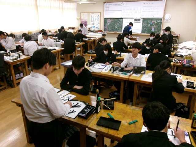 この日は8年生国語・書写で、自分の習熟度やペースを管理しながら学習が進んでいました。すでにスケジュールが示されており、生徒たちは個々に目標設定をしながらゴール(到達目標)を目ざしていました。