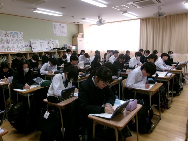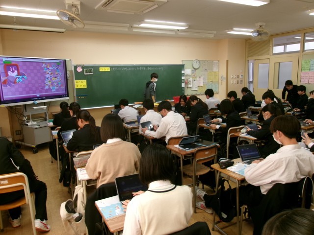 今日は、生態系における生物の働きについて、まとめの授業でした。冒頭、タブレットでクイズ形式(4択)の問題に挑みました。基本事項の内容でしたが、勉強しているからこそわかる難題が多かった印象を受けました。