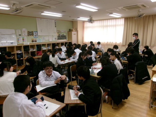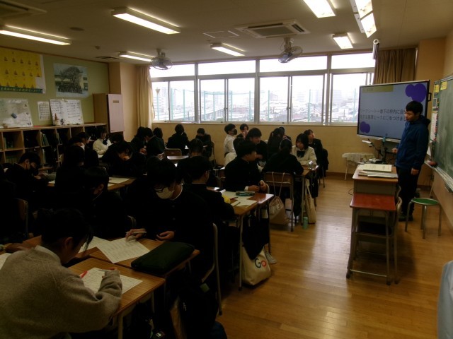 本日1時間目、8年生ではクラスごとに共通課題に取り組みました。