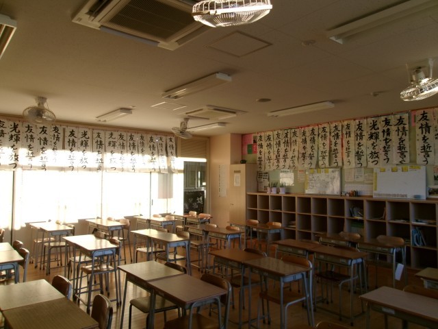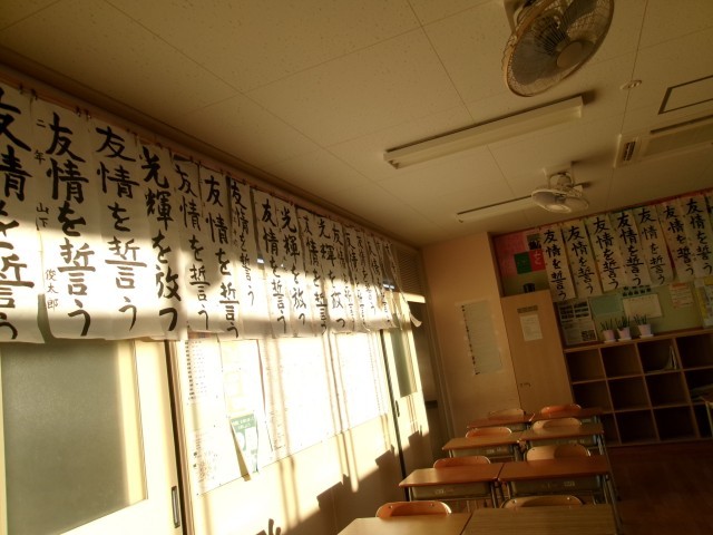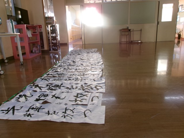 始業式後、さっそく各クラスでは「書き初め」の掲示が始まっていました。