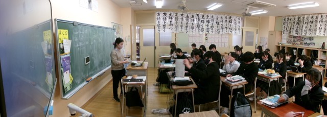 冒頭、動画教材を活用しながら場面設定をイメージして英文を考えました。基本的な型を理解した後、否定文へと移り、単に文法を学ぶだけでなく、実際の生活と重ね合わせながら学習が進んでいきました。