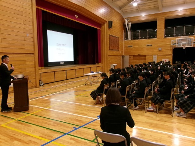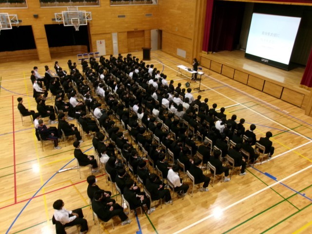 思春期まっただ中である8年生。心身共に多様な成長のプロセスに内在化する不安や緊張、期待や希望など、実生活に基づきながら、講演をいただきました。難しいテーマでありながらも、真剣な態度で授業を受けていました。