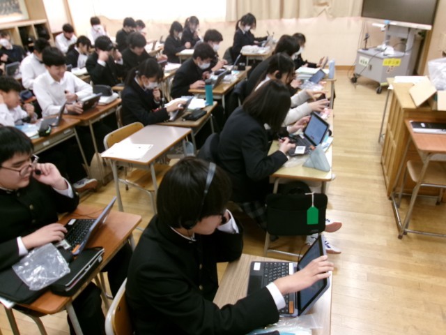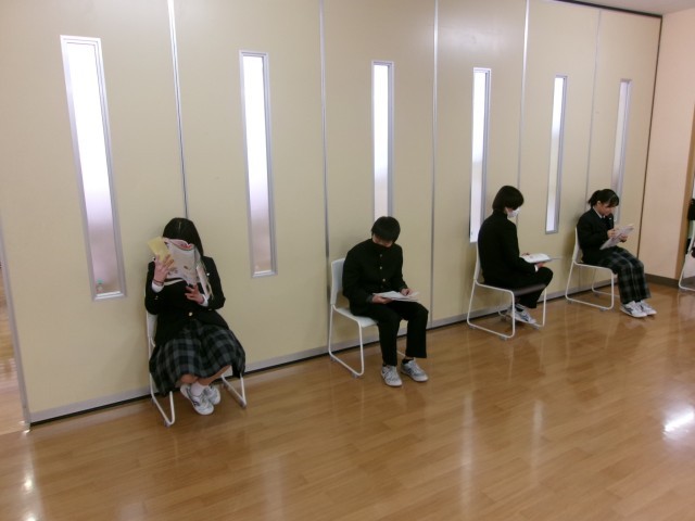 パフォーマンステスト 公開日 2026/01/20 更新日 2026/01/20 できごと 8年生英語では4技能のうち、「話す」、「聞く」に関するテストを行いました。 ALTとの先生によるマンツーマンの実際的な対話では、日頃の学習の成果が出ていた様子でした。待っている間、ヘッドセットを装着して、ESATーJ対応の授業が行われていました。