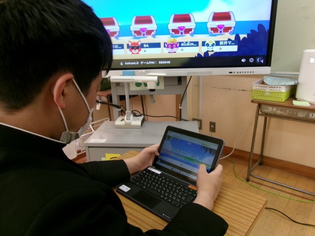 総復習 公開日 2026/01/23 更新日 2026/01/23 できごと 9年生理科は、7年生の学習内容から順番に総復習を行っていました。 今日は都立高校の入試問題にある選択肢(4つ)を踏まえて、基本的な知識を問う問題を中心に復習していました。仲間と点数を競い合うゲームの要素もあるため、自然と学習にのめり込んでいきました。間違えるたびに、過去の学習内容を振り返る対話が自然とうまれていました。