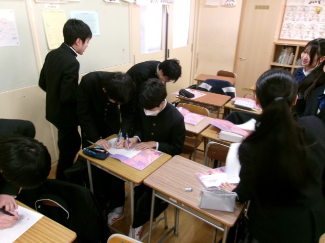 考える道徳 公開日 2026/01/28 更新日 2026/01/28 できごと 毎週水曜日の1時間目は「考える道徳」です。 この日、9年生のあるクラスでは、校長先生が道徳の授業を行っていました。時間軸の視点からテーマに迫る展開で、卒業までの期間をイメージする授業のように思いました。他者宛にしたためた言葉には、どのようなメッセージが込められているのか、公開が待ち遠しいです。