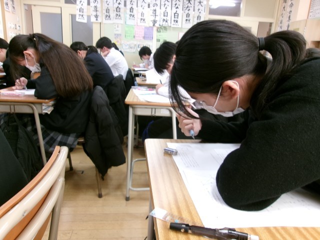 これからが勝負 公開日 2026/01/29 更新日 2026/01/29 できごと 9年生数学では、すでに中学3年生のカリキュラムを終え、演習問題中心の授業を行っています。 今日は、都立高校入試の出題に近い『そっくりテスト』に取り組んでいました。時間のペース配分や基本となる大問1を確実に得点するなど、具体的な戦術をイメージしながら問題にとりかかっている様子でした。