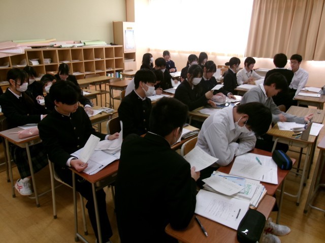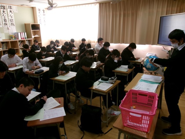 力試し 公開日 2026/01/30 更新日 2026/01/30 できごと 9年生では、5教科(国語、社会、数学、理科、英語)のカリキュラムが終盤をむかえており、多くの教科で入試対策が行われています。 この日も各教科では、演習問題、答え合わせ、解説、再度の演習、というサイクルで学習しています。異なる問題でも、経験がものをいう入試。中学校3年間の力試しと思って頑張っている生徒の表情が輝いていました。