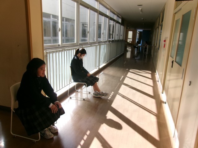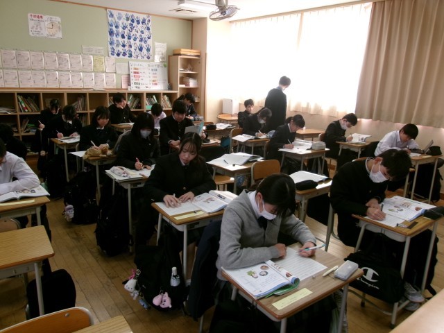 1人1人順番に行うため、待っている間から緊張感が漂ってきました。他の生徒たちは、教室で課題に取り組んでいました。