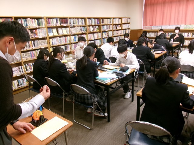 ビンゴゲームの要素を取り入れて、歴史的事象を答えていく内容でした。先生が問題を読み始めるとすぐに解答する生徒が多く、驚きました。