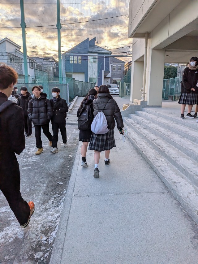 寒い朝ですが、これから鎌倉へ校外学習へ行く8年生の心はあったかでした。